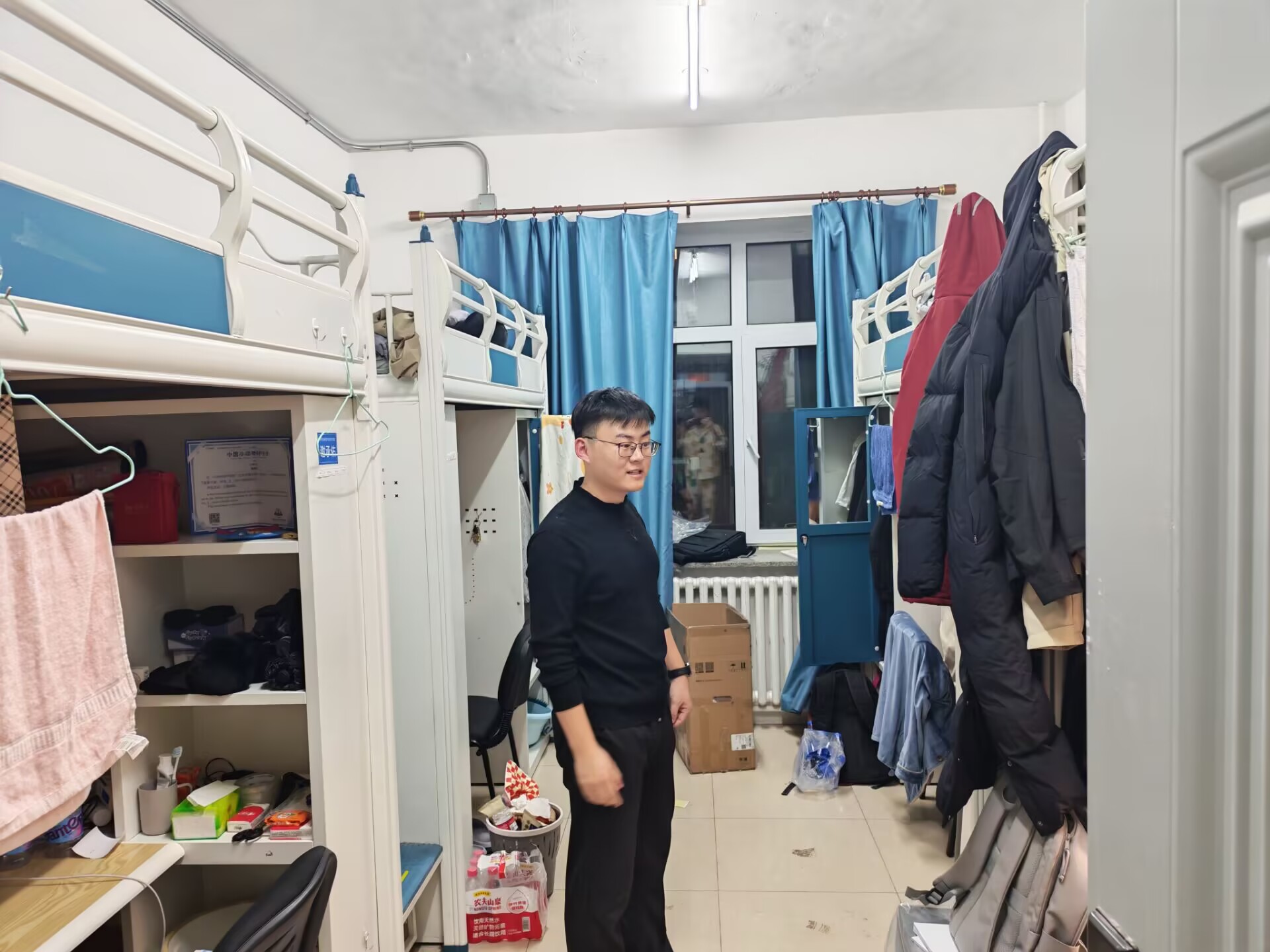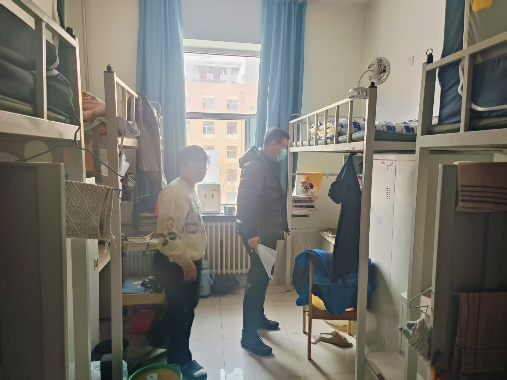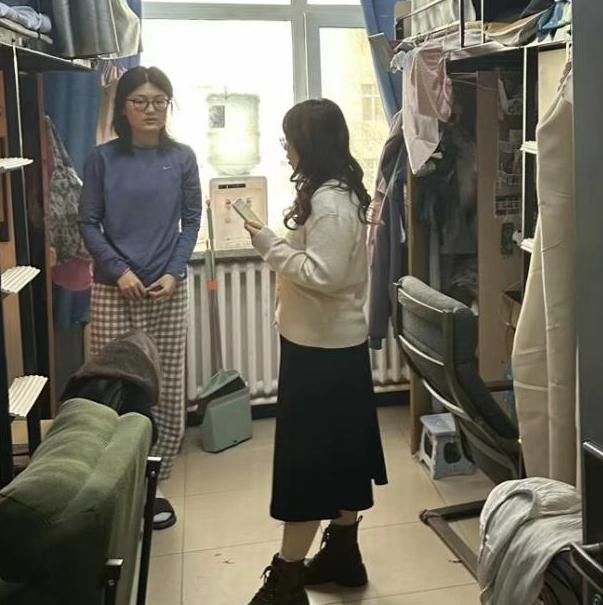 走访过程中,辅导员老师们首先重点关注了寒假期间部分宿舍楼的施工改造情况。细致询问同学们入住后的切身感受,认真检查门窗、床等设施是否完好,并及时协调相关部门进行报修,全力保障同学们的基本生活条件,确保大家住得安心、舒心。